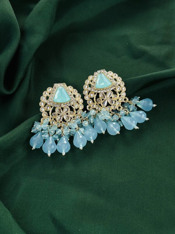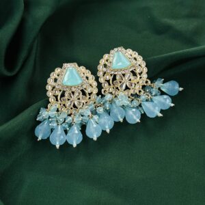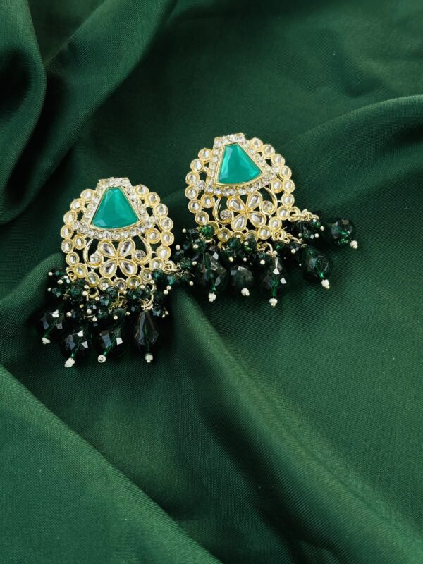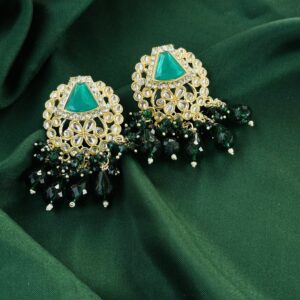 Perfect for weddings, festive occasions, or a touch of opulence to your traditional attire, these earrings bring a balance of sophistication and vibrancy. The lightweight construction ensures all-day comfort without compromising on grandeur. Pair them with your favorite lehenga, saree, or even a chic Indo-western outfit for a regal finish.